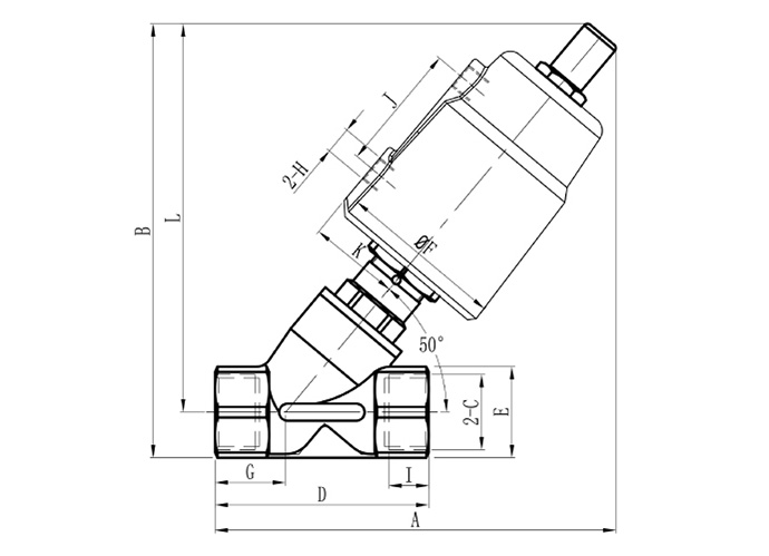 | 型號 | 流量通徑DN(mm) | 執(zhí)行器規(guī)格 | A | B | C | D | E | F | G | H | l | J | K | L |