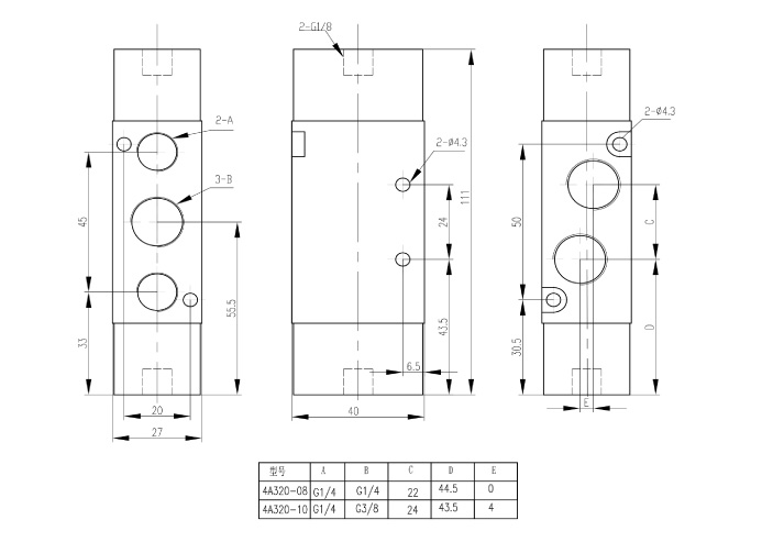 | 接管口徑 | 進(jìn)氣=出去=3/8" 排氣=1/4" |