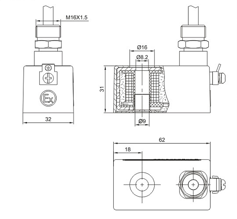 9孔徑適用于4V系列管接式防爆電磁線圈。