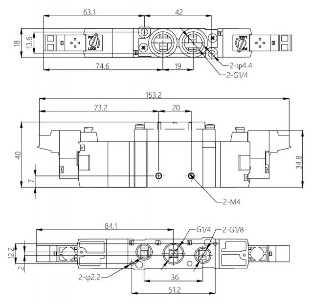 | 接管口徑 | 進(jìn)氣口=工作口=排氣口=M5 | 進(jìn)氣口=工作口=排氣口=1/8 | 進(jìn)氣口=工作口=1/4 | |