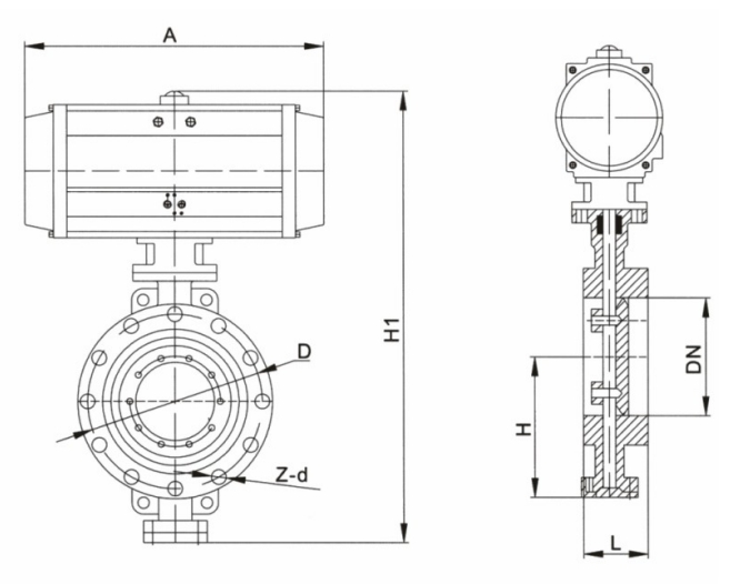 | 型 號(hào) | 公稱通經(jīng) (英寸) | L | D | D1 | H | H1 | H2 | A | Z-d | 執(zhí)行器 | ||