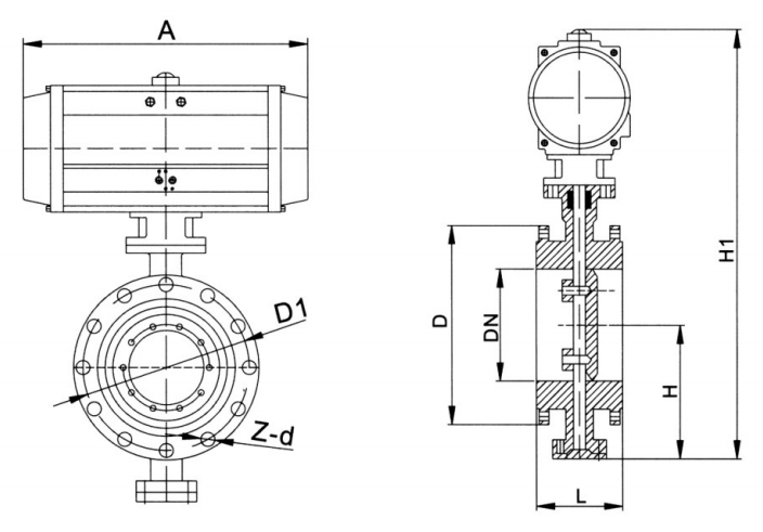 | 型號 | 公稱通經(jīng) (英寸) | L | D | H | H1 | A | Z-d | 執(zhí)行器 | |