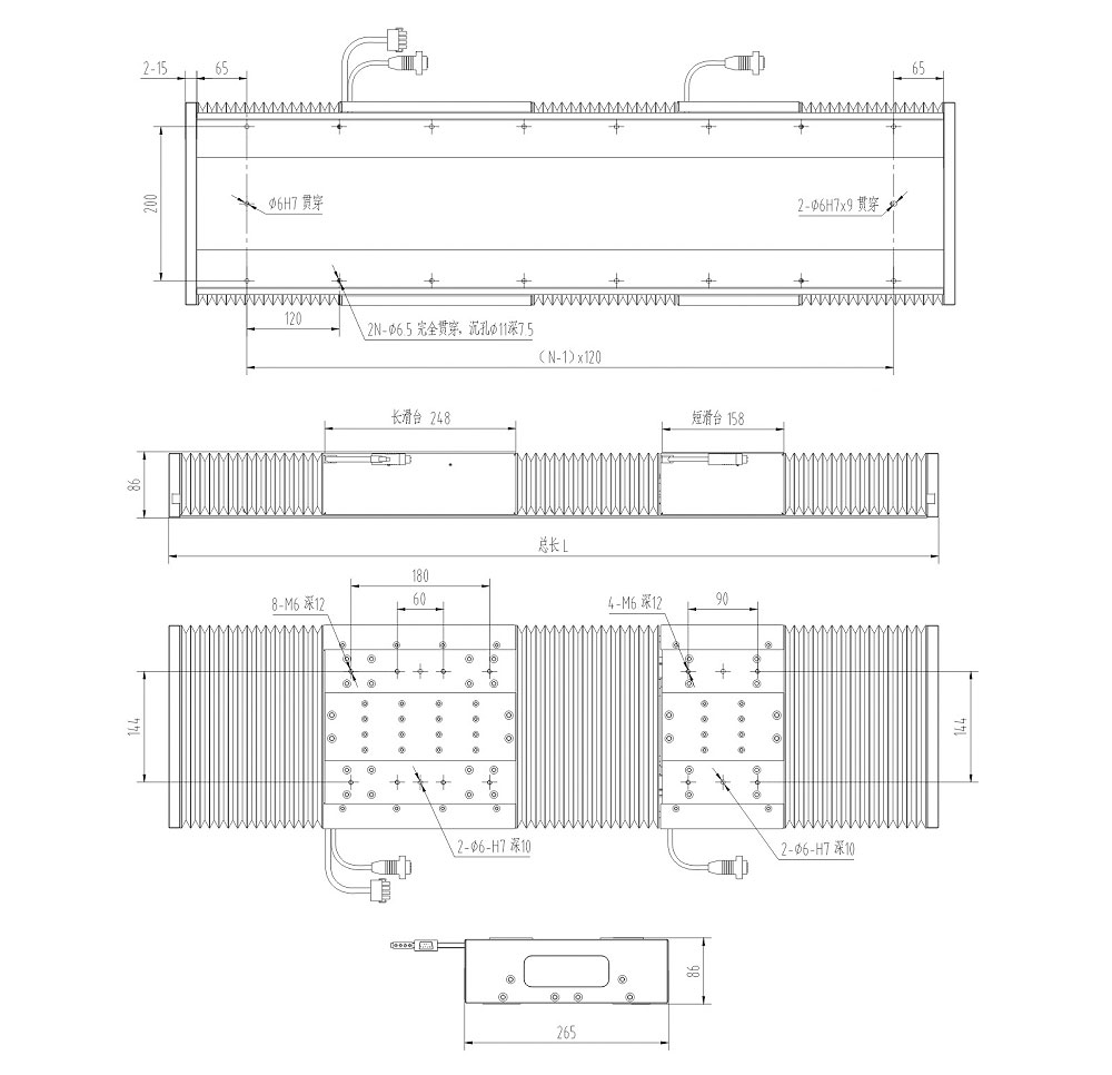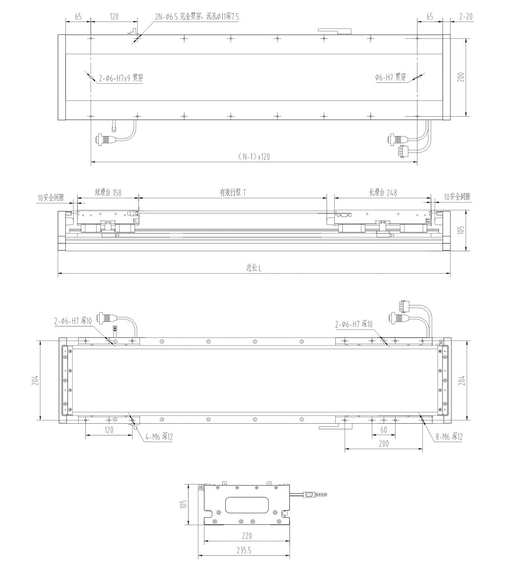 ○ 標(biāo)準(zhǔn)產(chǎn)品可達4M,可非標(biāo)定制長度行程單軸多動子運動