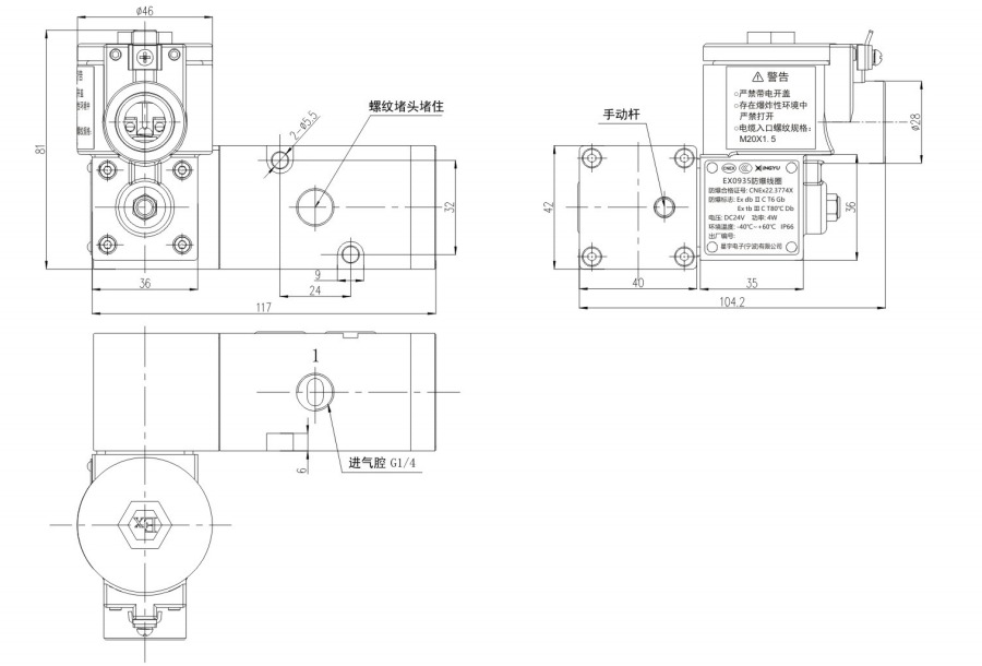 二位五通板接式隔爆電磁閥