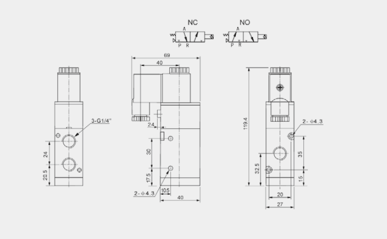 接管口徑 | 進(jìn)氣=出氣=排氣= G1/4” | 進(jìn)氣=出氣= G3/8” 排氣=G1/4” | ||||||
